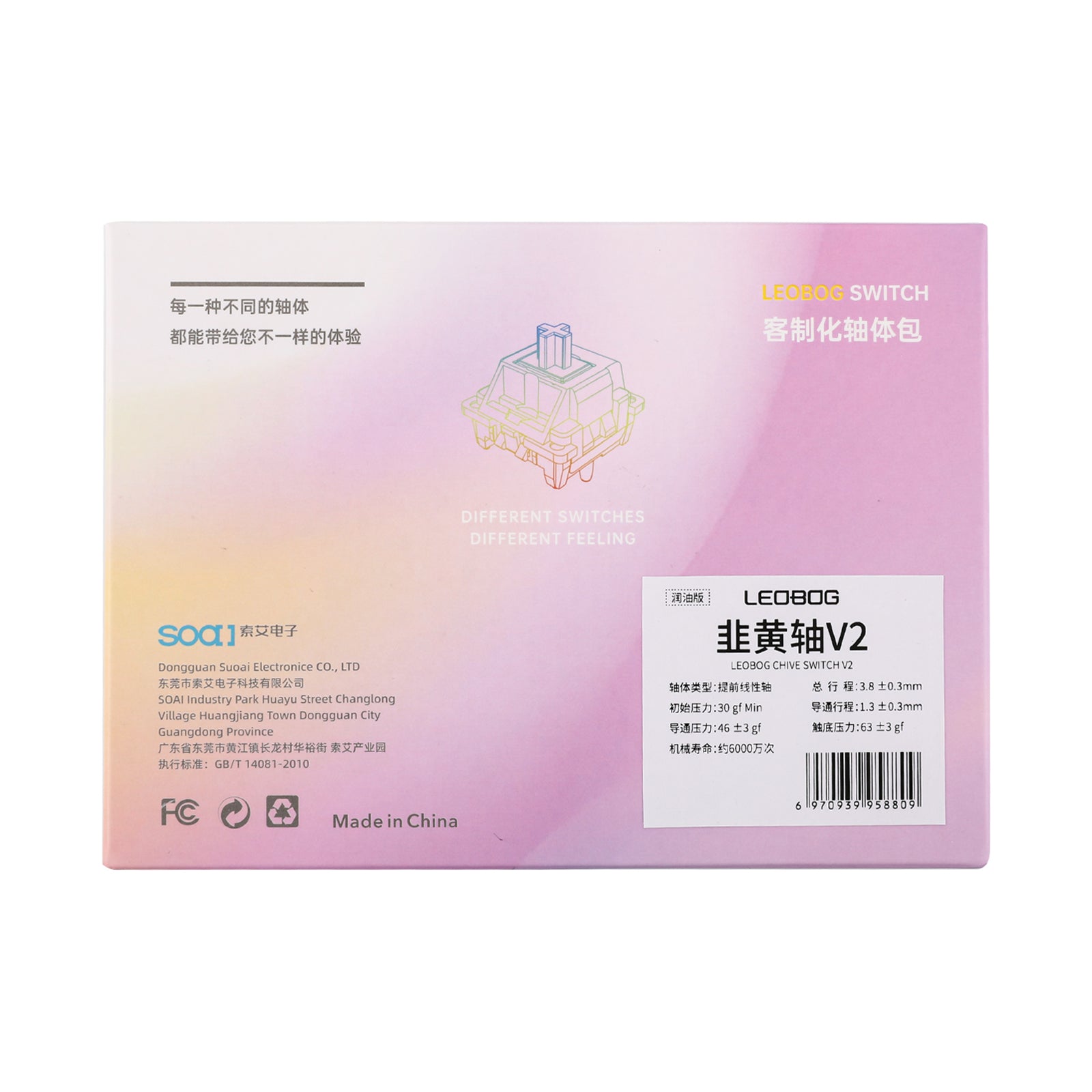 The LEOBOG Chive Linear Switch V2 are designed to be compatible with the general MX structure, fitting most keycap sets with an (X) cross stem. This feature enhances their versatility, allowing for easy switch replacement and keyboard customization.